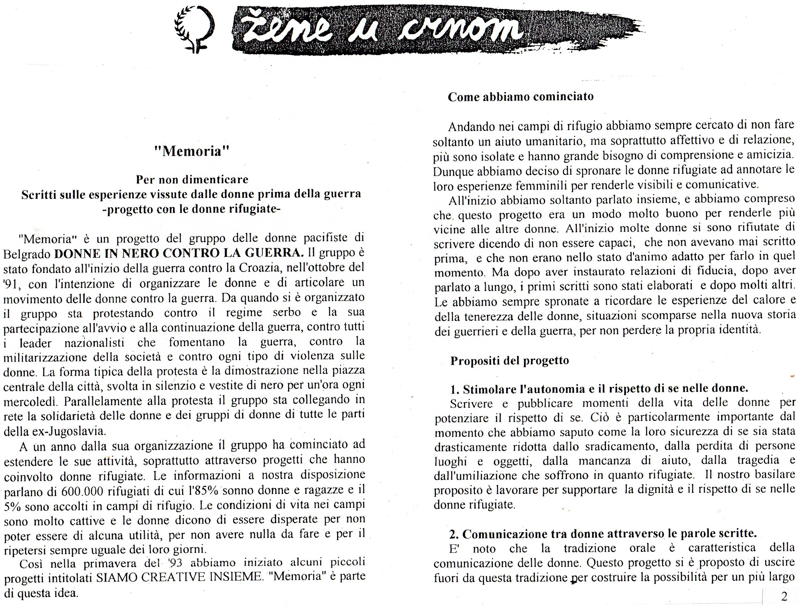 Scritti sulle esperienze vissute dalle donne profughe prima della guerra.