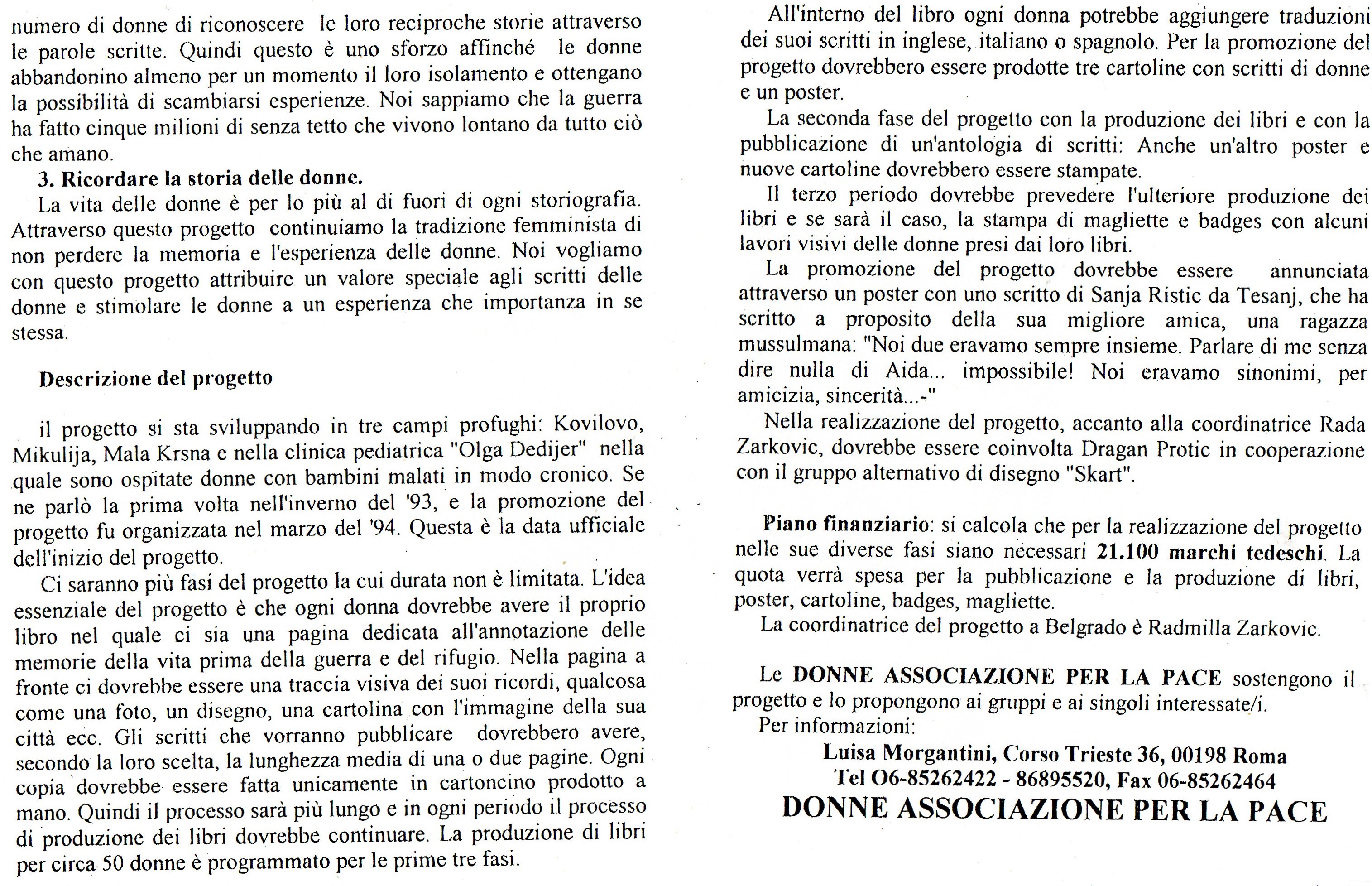Gli scritti, raccolti dalle Donne in Nero di Belgrado coordinate da Rada Žarkovic nei campi profughi di: Kovilovo, Mikulija, Mala Krsna e nella clinica pediatrica "Olga Dedijer", sono stati poi pubblicati in un libro redatto con i manoscritti originali tradotti dal serbocroato, oltre che in italiano, anche in inglese e spagnolo. Un esempio si può vedere nel foglio 4 del documento che illustra il progetto