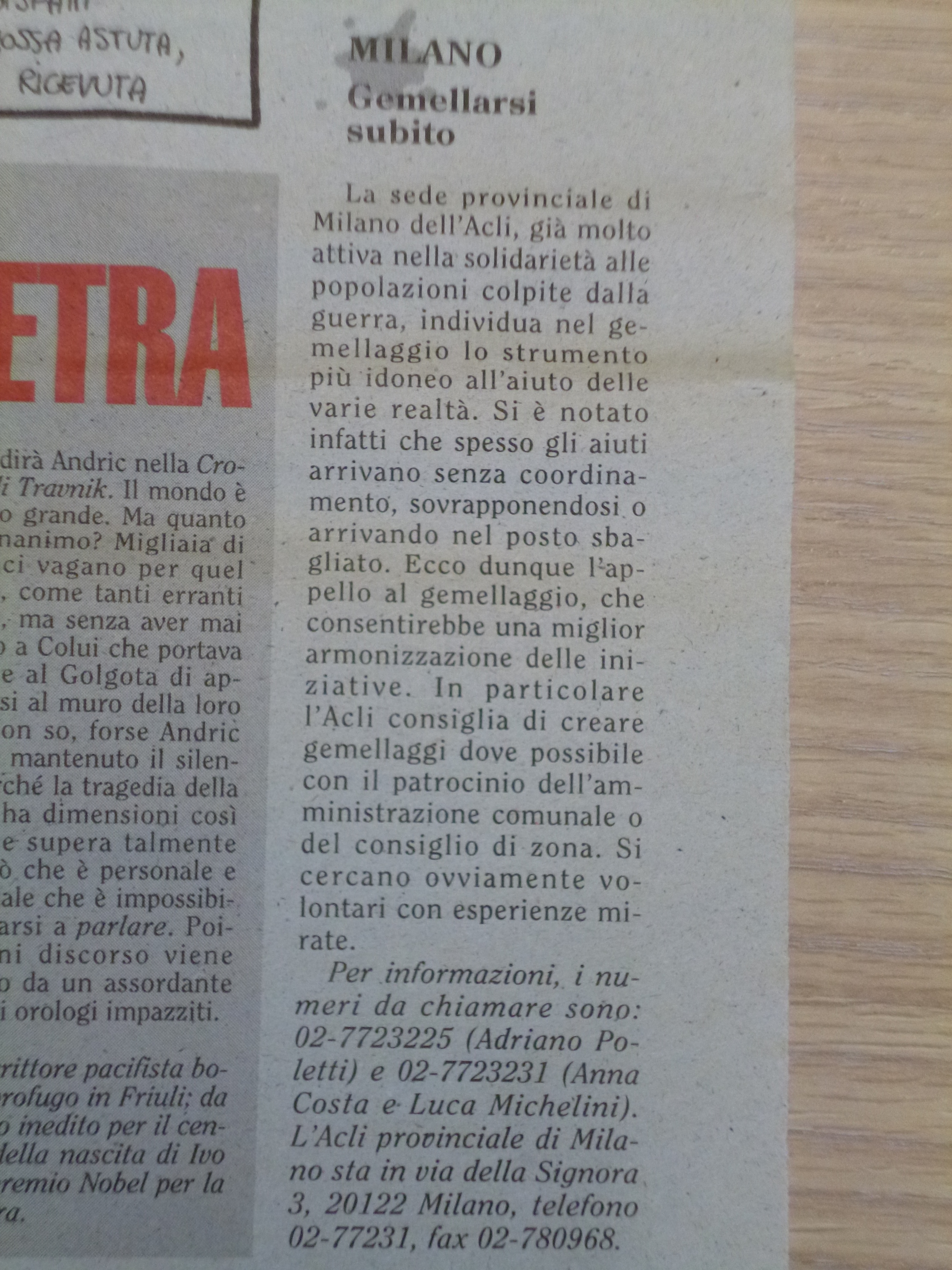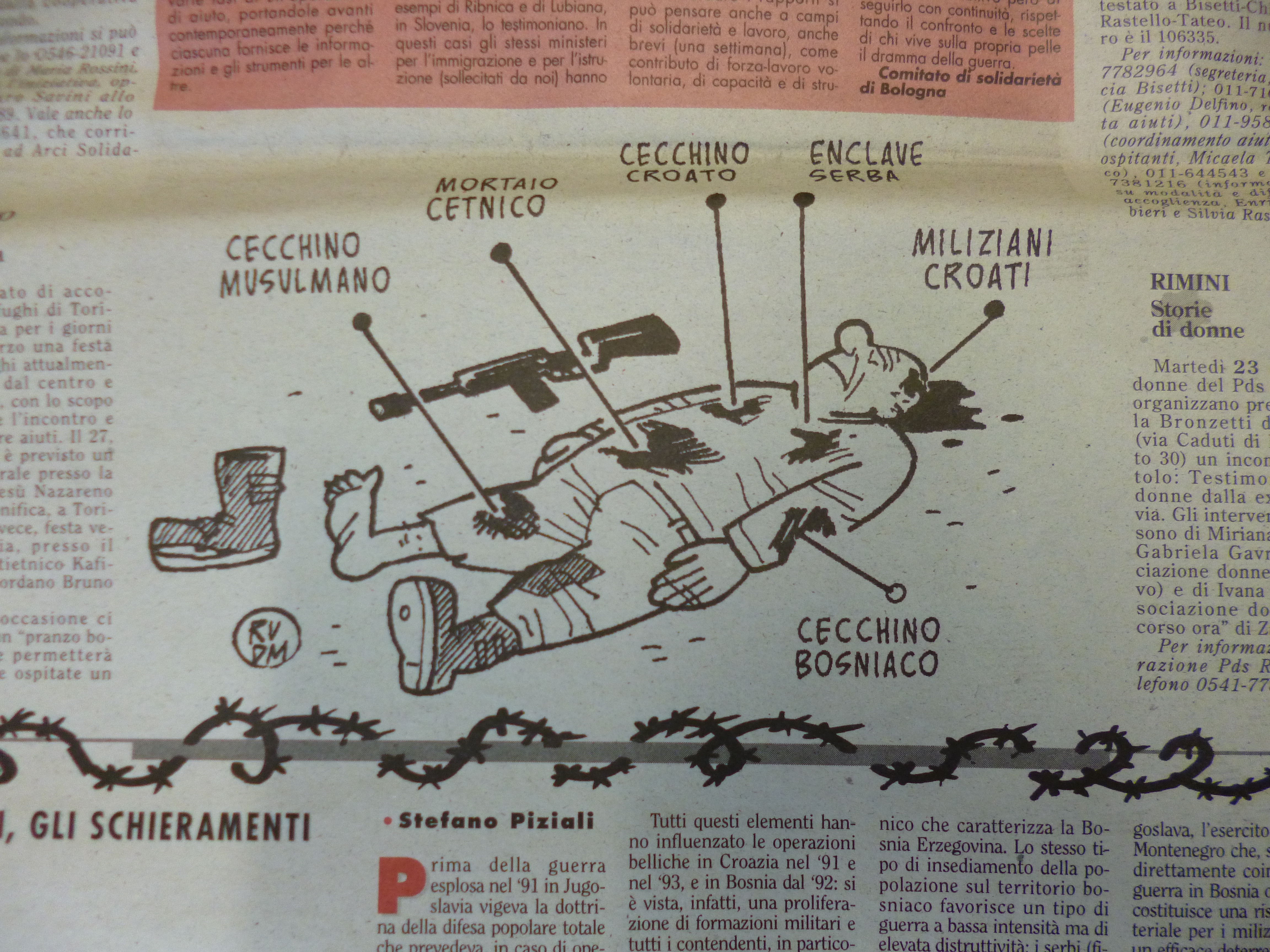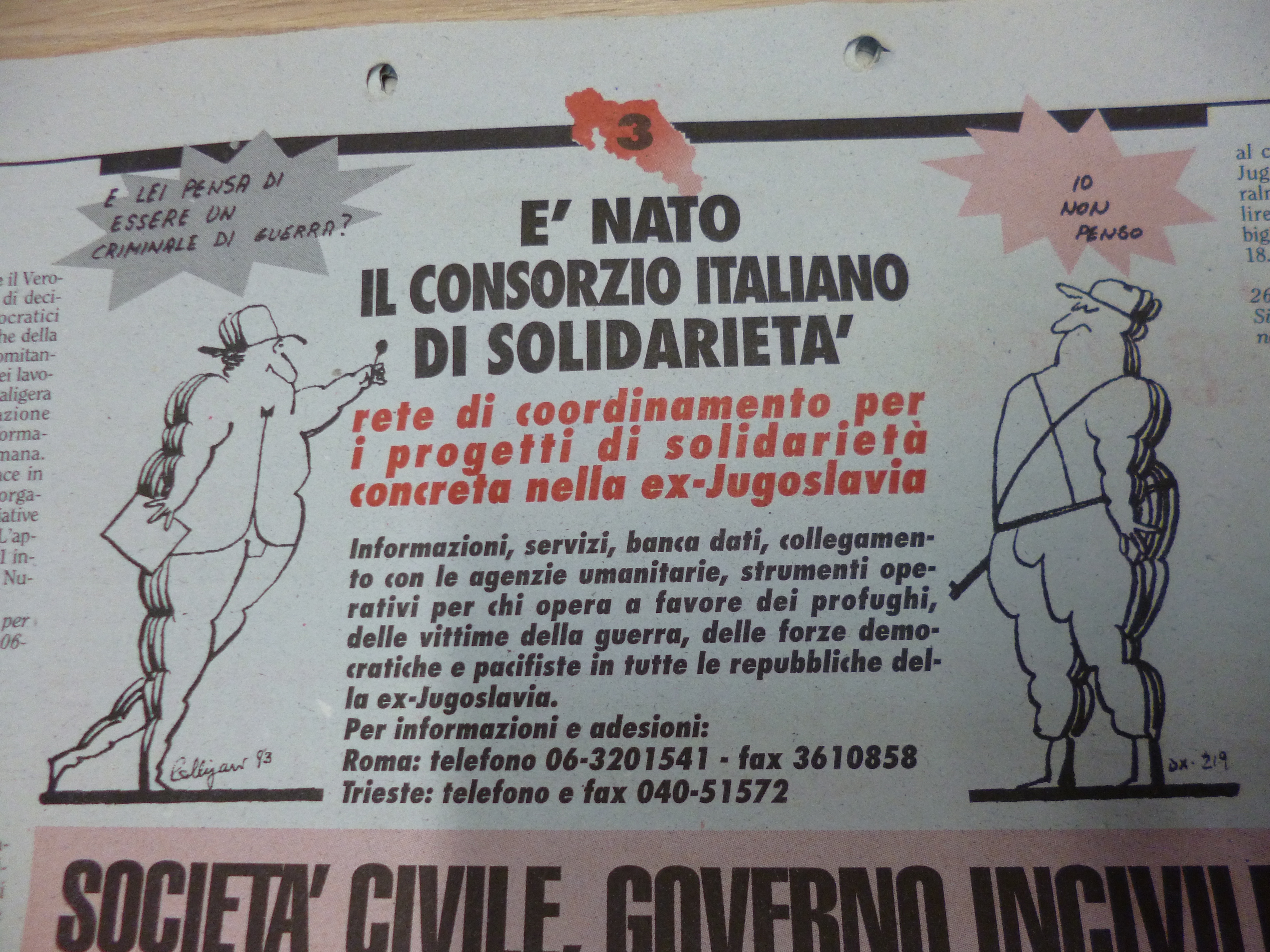 Copia del settimanale satirico Cuore interamente dedicata alla guerra in Jugoslavia. Oltre ai testi e le vignette di giornalisti e diversi autori, vengono segnalate le tante iniziative sui diversi territori portate avanti dai movimenti di solidarietà in Italia.