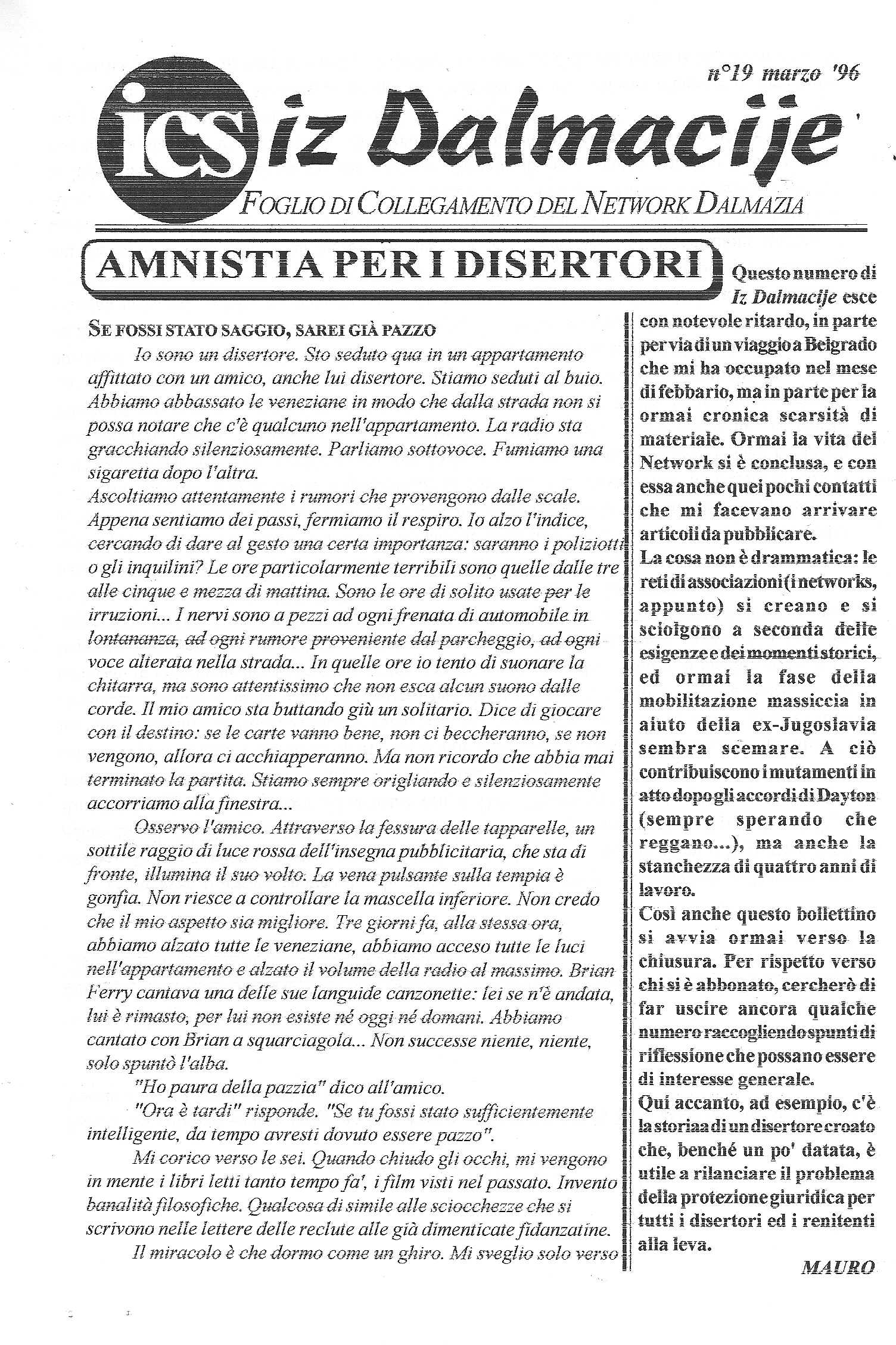 Iz Dalmacije è stato un foglio di collegamento tra piccoli gruppi e singoli volontari che all'interno o in collegamento con l'ICS - Consorzio Italiano di Solidarietà operavano nei campi profughi e nei villaggi della costa dalmata. Ventuno bollettini di quattro pagine, compilati e fotocopiati da un gruppo di studenti universitari a Trento, e poi spediti ad una cinquantina di indirizzi in prevalenza del centro-nord Italia. Era l'epoca pre-internet, quando si comunicava via fax o lettera. Una piccola testimonianza del lavorio dal basso di quegli anni, con tutte le ingenuità e le fatiche del volontariato militante ma anche le riflessioni e i pensieri sulla qualità e sostenibilità degli interventi.